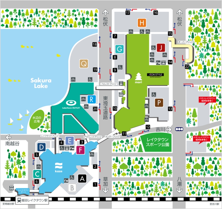 常磐自動車道を抜け、越谷レイクタウンの看板が見えてくると、自然と車内に歓声が。広大な敷地と大きな建物が見えてくると、やはりテンションが上がります。