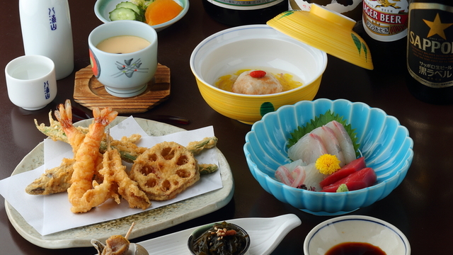 また、上品なコース料理も人気です。天ぷらはもちろん、お刺身や小鉢などが付いた構成で、特別な日のランチやディナーにもぴったり。お酒も充実しており、冷酒や天ぷらに合う白ワインなど、食事との相性を楽しむことができます。