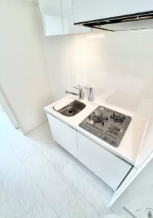 2口ガスコンロ付きのシステムキッチンは、自炊派に嬉しい設備しております。コンパクトながら効率的なレイアウトで、料理や片付けがしやすい仕様です。調理スペースや収納もしっかり確保されており、毎日の食生活をサポートしてくれます。