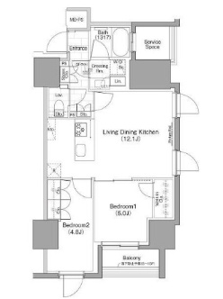 本物件には5帖と4.8帖の洋室があり、ライフスタイルに合わせた多様な使い方が可能です。フローリング仕様で明るく清潔感のある室内は、家具の配置もしやすくインテリアを楽しめます。5帖の洋室は寝室としてちょうど良い広さで、ベッドや収納家具を置いてもゆとりを感じられます。4.8帖の洋室はワークスペースや子ども部屋としても最適です。角部屋ならではの採光性があり、日中は自然光がたっぷりと差し込みます。エアコンも設置されているため、年間を通して快適に過ごせる点も魅力です。また、遮音性に優れたRC造のため、プライバシー性も高く、落ち着いた時間を確保できます。洋室のバランスが良いため、在宅勤務とプライベートをしっかり分けたい方や、将来の生活スタイルの変化にも対応できる間取りとなっています。