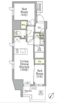 洋室は、フローリングが美しく温かみのあるデザインでまとめられています。2部屋あるうちの一室は約4.5畳、もう一室は約2.4畳と、用途に合わせて使い分けが可能です。寝室としてはもちろん、テレワークスペースや趣味の部屋としても最適です。南東向きの窓からは自然光が差し込み、朝から心地よい一日を迎えられます。エアコンが完備されており、一年を通して快適に過ごせます。壁面収納やウォークインクローゼットを利用することで、お部屋をすっきりと保てます。シンプルな間取りは家具の配置もしやすく、ライフスタイルに合わせたアレンジが楽しめます。