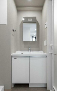 独立洗面台は、忙しい朝にも使いやすいワイドタイプです。鏡裏収納があり、化粧品や洗面用品をすっきりと片付けることができます。明るい照明が設置されているため、身支度がしやすく清潔感も抜群です。デザインはシンプルでありながら高級感があり、水まわり全体の印象を引き締めています。洗面台の下部にも収納があり、ドライヤーやタオルなどをまとめて置くことが可能です。独立タイプなのでプライバシーが守られ、来客時にも安心して使えます。毎日のルーティンが快適になる、便利で清潔な洗面空間です。
