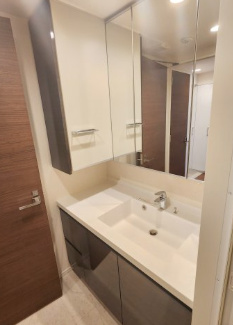 独立洗面台は収納力と使い勝手を兼ね備えています。朝の身支度から夜のスキンケアまで快適に利用できる広さと設計で、家族が同時に使う時間帯でも効率的に活用できます。大きめの鏡と収納スペースがあり、化粧品や日用品をすっきりと整理可能です。洗面台下には収納スペースもあり、洗剤やタオルなどを見せずに収納できるため、生活感を抑えた空間を演出できます。照明も明るく、清潔感のあるデザインで、毎日の習慣がより快適になります。独立した洗面スペースがあることで、浴室やトイレとの動線もスムーズになり、暮らしやすさを高めています。