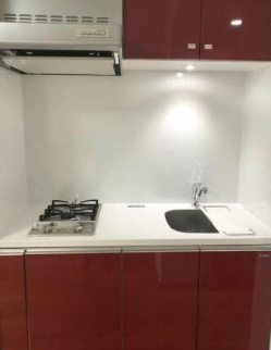 キッチンのカラーは上品なホワイト系で、清潔感あふれるデザインです。LED照明が料理中の手元を明るく照らします。さらに、給湯設備も完備されており、ガスで素早くお湯を沸かすことができます。シンプルながら機能性に優れたキッチンで、毎日の料理がより楽しく、快適になります。