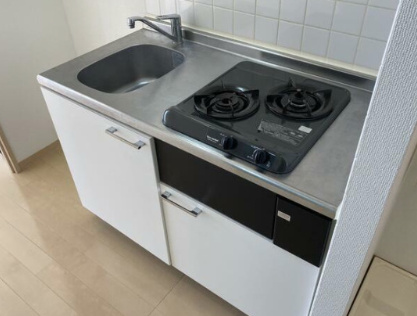 2口ガスコンロ付きのシステムキッチンは、自炊派の方にとって嬉しい設備です。調理スペースがしっかり確保されているため、簡単な料理から本格的な調理まで対応できます。収納スペースも豊富で、調理器具や食器類をすっきり整理できる点も魅力です。都市ガス仕様のため、ランニングコストを抑えながら効率よく調理が可能です。