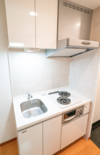 キッチンは2口ガスコンロ付きのシステムキッチンを採用しています。自炊派の方には特に嬉しい仕様で、同時調理が可能なため料理の効率が大きく向上します。作業スペースもしっかり確保されており、調理中のストレスを感じにくい設計です。収納も充実しているため、調理器具や食器類をすっきり整理できます。外食を控えて健康的な生活を送りたい方にとって、毎日の料理が楽しくなるキッチンです。