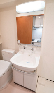 洗面所には独立洗面台が設置されており、朝の身支度や帰宅後の手洗いがスムーズに行えます。鏡付き収納があるため、洗面用品や化粧品を整理しやすく、生活感を抑えた空間づくりが可能です。キッチンや浴室と分かれていることで、来客時にも使いやすく、ワンランク上の生活を実感できる設備です。