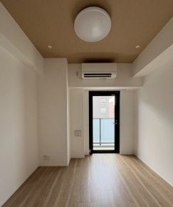 約5.6帖の洋室は、1Kタイプながら使い勝手の良い間取りが魅力です。フローリング仕様で、明るく清潔感のある空間に仕上がっています。ベッドやデスクを配置しても圧迫感が出にくく、在宅ワークや趣味の時間もしっかり確保できます。エアコン完備のため、季節を問わず快適に過ごせるのも嬉しいポイントです。南東向きのバルコニーからは自然光が入り、朝の時間帯は特に心地よさを感じられます。シンプルな内装はインテリアの自由度が高く、自分好みの空間づくりを楽しめます。