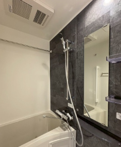 バスルームはバス・トイレ別で、ゆったりとした入浴時間を確保できます。浴室乾燥機が備わっているため、雨の日や花粉の季節でも洗濯物を快適に乾かせます。新築ならではの美しい設備で、日々の疲れをしっかり癒せる空間です。清掃もしやすく、常に清潔な状態を保てる点も魅力です。