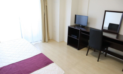 洋室はフローリング仕上げで、シンプルかつ上質な空間が広がっています。23.80㎡の1Kタイプながら、家具配置がしやすい間取りのため、ベッドやデスク、収納家具を置いても圧迫感を感じにくい設計です。南東向きの採光により、朝から明るい光が差し込み、気持ちの良い一日をスタートできます。エアコンも設置済みで、季節を問わず快適な室温を保てます。人感センサー付き照明など、日々の生活をさりげなくサポートする設備も魅力です。