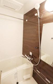バスルームはトイレと独立した設計で、ゆったりと入浴時間を楽しめます。浴室乾燥機付きのため、雨の日や花粉の季節でも洗濯物を乾かせて便利です。清潔感のあるデザインで、日々の疲れを癒すリラックス空間としてご利用いただけます。