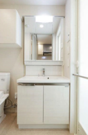 独立洗面台が設置されている点も大きなポイントです。洗面スペースが独立していることで、朝の身支度やスキンケアを落ち着いて行えます。鏡付きで収納も備えているため、洗面用品を整理整頓しやすい設計です。水回りがしっかり分かれていることで、来客時にもプライバシーを保ちやすくなっています。単身向け物件では省略されがちな設備ですが、本物件ではしっかり確保されています。生活の質を高める重要なポイントです。